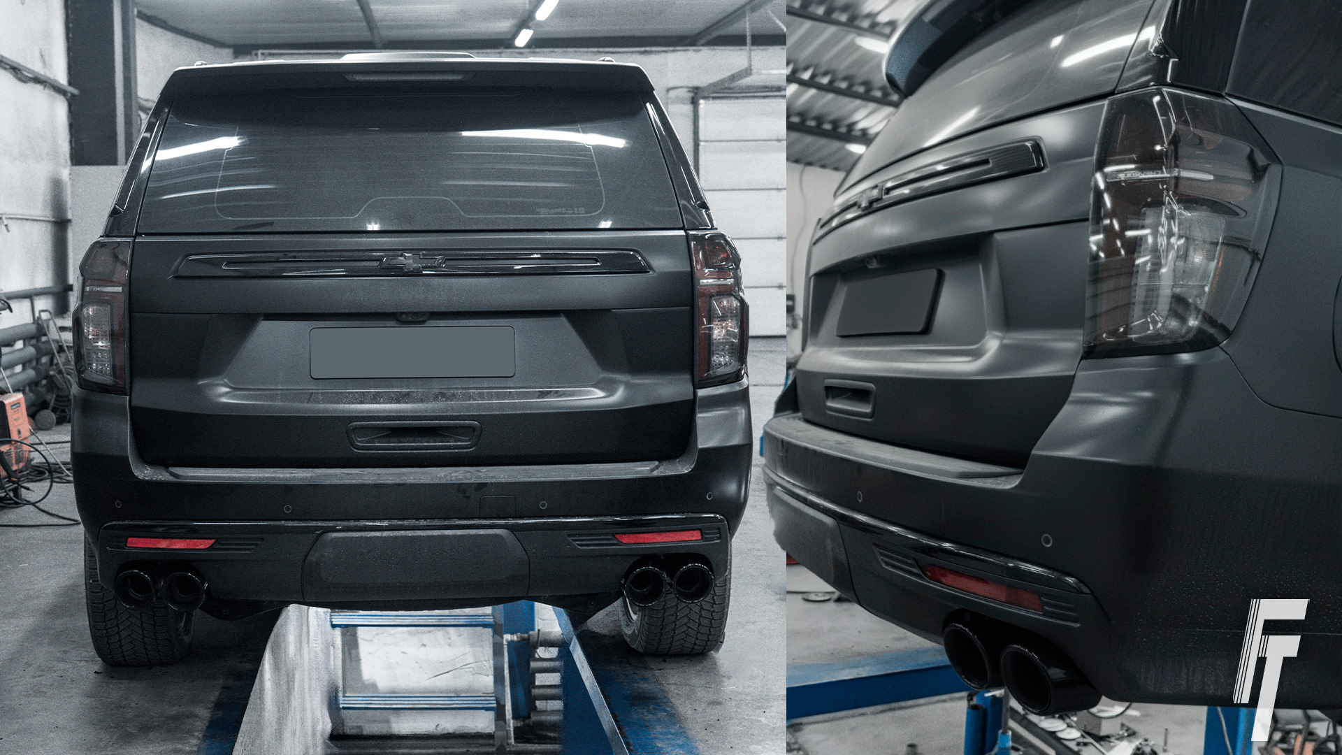 К нам обратился владелец Chevrolet Tahoe, который хотел получить регулируемую по громкости выхлопную систему, сохранив комфорт в повседневной езде, но при этом с возможностью насладиться звуком восьми цилиндрового двигателя по нажатию кнопки. Плюс — обновить внешний вид, установив двойные чёрные насадки, окрашенные жаростойкой порошковой краской.