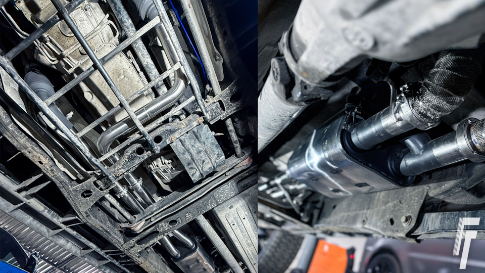 Мы установили оригинальные спортивные катализаторы с крупным сечением и большим напылением драгоценных металлов. Это позволило сохранить экологические характеристики и при этом улучшить пропускную способность выхлопа