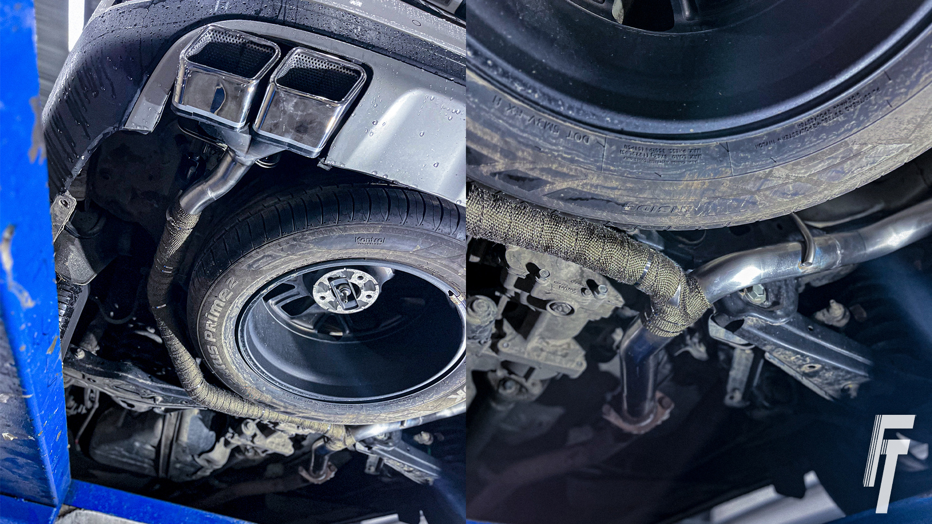 Чтобы сохранить возможность вернуть всё к стоку, мы не трогали основную систему. Работу начали от штатного фланцевого соединения в задней части выхлопа Sorento.