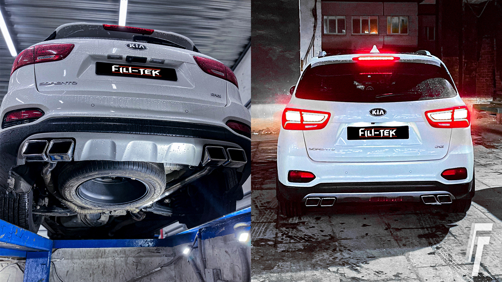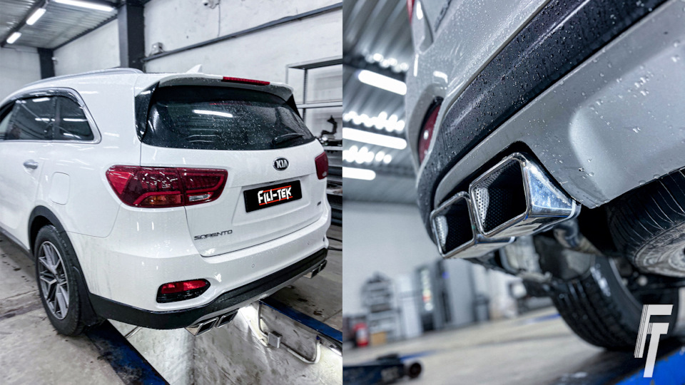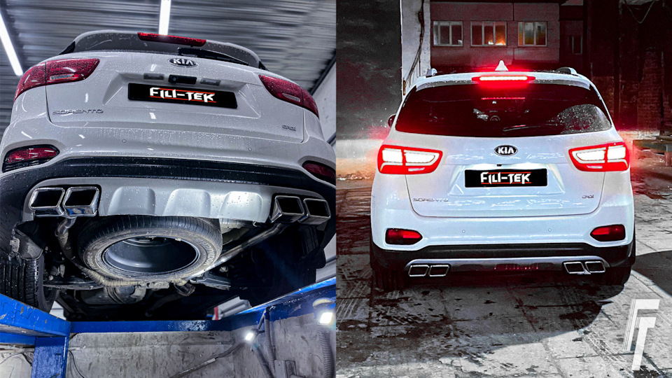 К нам обратился владелец Kia Sorento с классическим запросом: сделать заднюю часть внедорожника симметричной, выведя выхлопные трубы с двух сторон. С завода у многих комплектаций Sorento выхлоп идёт только с одной стороны, что выглядит не так солидно, как могло бы.