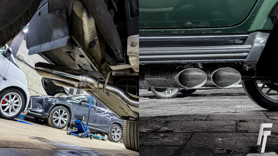 Конструктивно на дизельных G-Классах (W463) стоит один глушитель с одним выходным патрубком. Просто приварить вторую насадку к пустому месту — значит получить «фальшивку», из которой ничего не будет выходить. Клиенту нужен был аутентичный вид и функциональность.