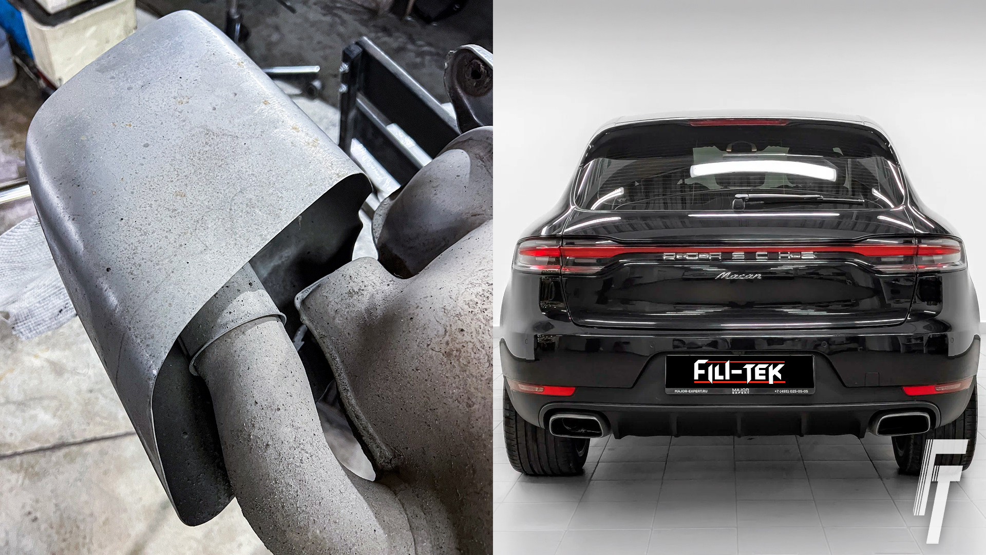 Простая задача? Только на первый взгляд. Потому что с завода на Macan стоят два глушителя из который выходит по одной трубе к насадке