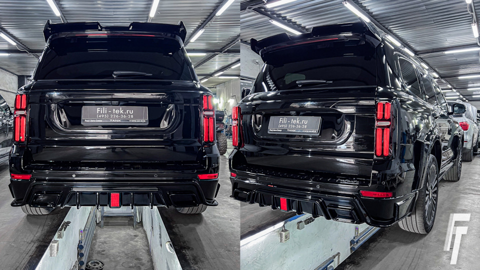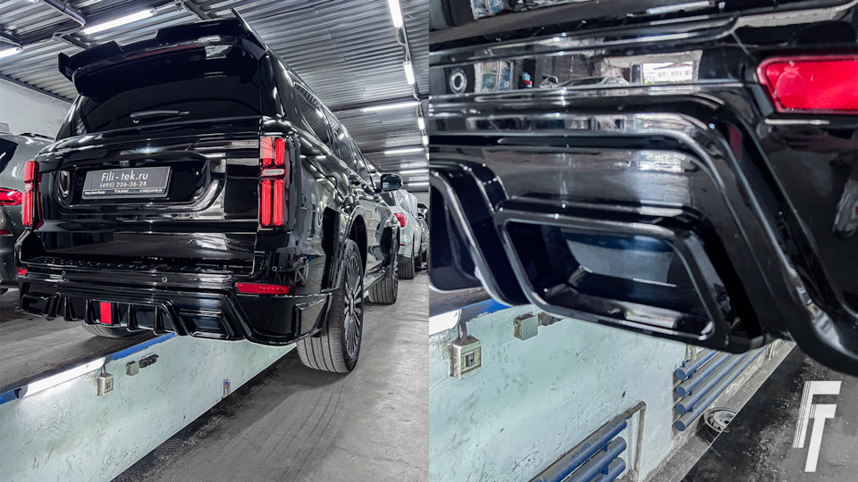 К нам снова приехал Tank 500, но на этот раз — с новым запросом. Мы уже сталкивались с особенностью этого автомобиля: с завода выхлопная система не имеет насадок, а труба просто выведена вниз. Когда владельцы ставят агрессивный обвес, возникает проблема: выхлопные газы начинают бить прямо в пластиковый диффузор и плавить его.