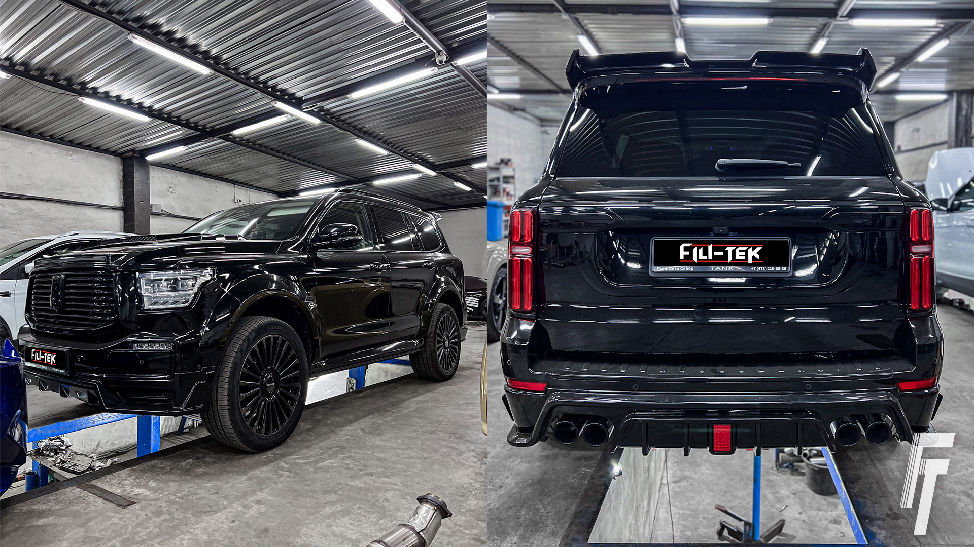 Установка сдвоенных насадок Черный глянец на Tank 500